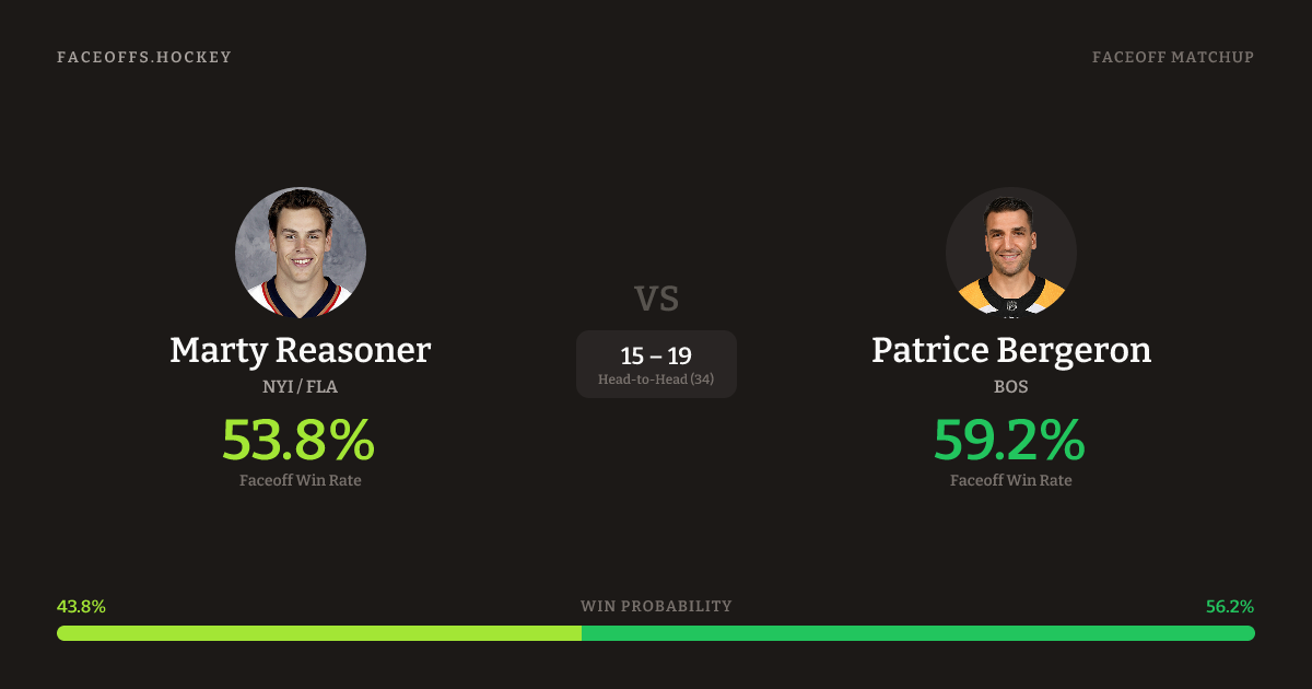 Marty Reasoner vs Patrice Bergeron — Faceoff Head-to-Head