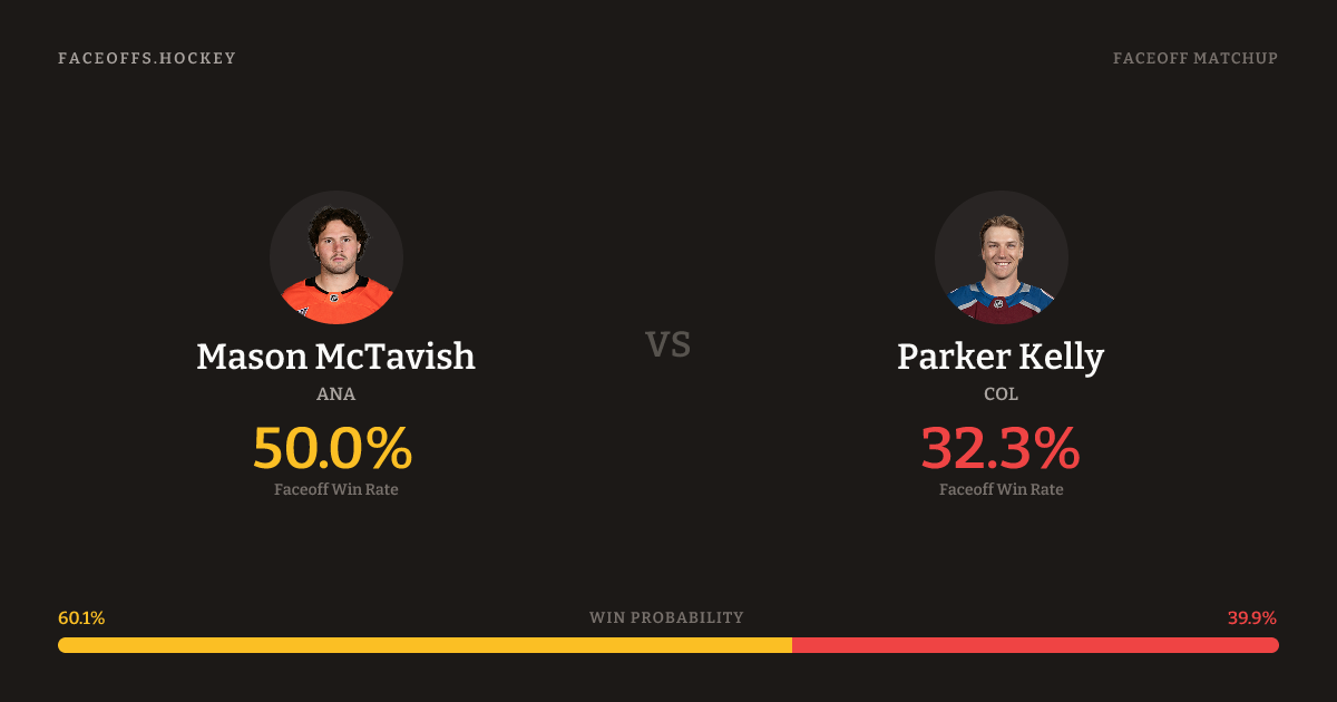 Mason McTavish vs Parker Kelly — Faceoff Head-to-Head