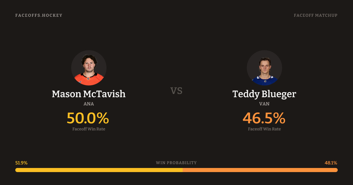 Mason McTavish vs Teddy Blueger — Faceoff Head-to-Head