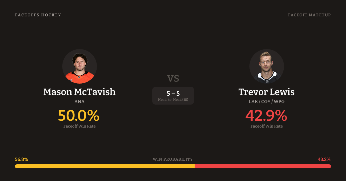 Mason McTavish vs Trevor Lewis — Faceoff Head-to-Head