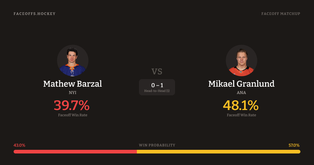 Barzal 46.9% vs Granlund 47.4% (-0.9%)