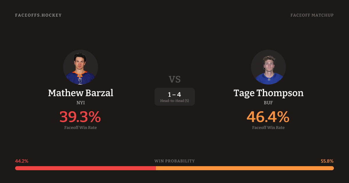 Mathew Barzal vs Tage Thompson — Faceoff Head-to-Head