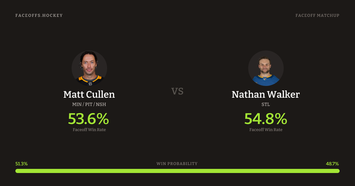 Matt Cullen vs Nathan Walker — Faceoff Head-to-Head