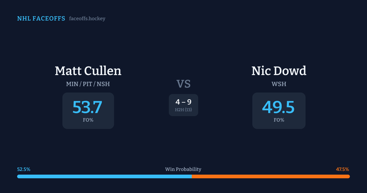 Matt Cullen vs Nic Dowd — Faceoff Head-to-Head