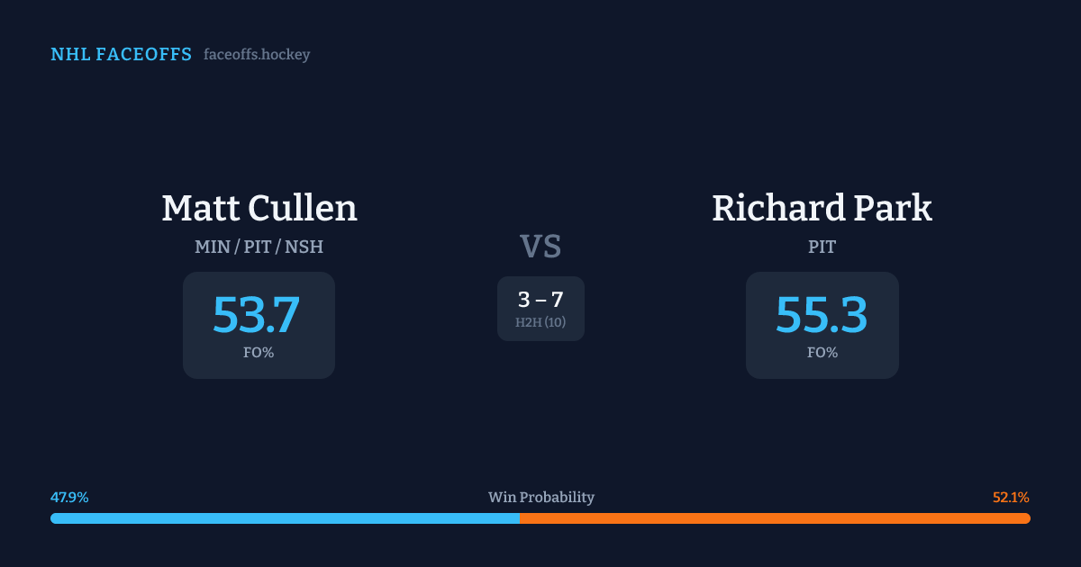 Matt Cullen vs Richard Park — Faceoff Head-to-Head