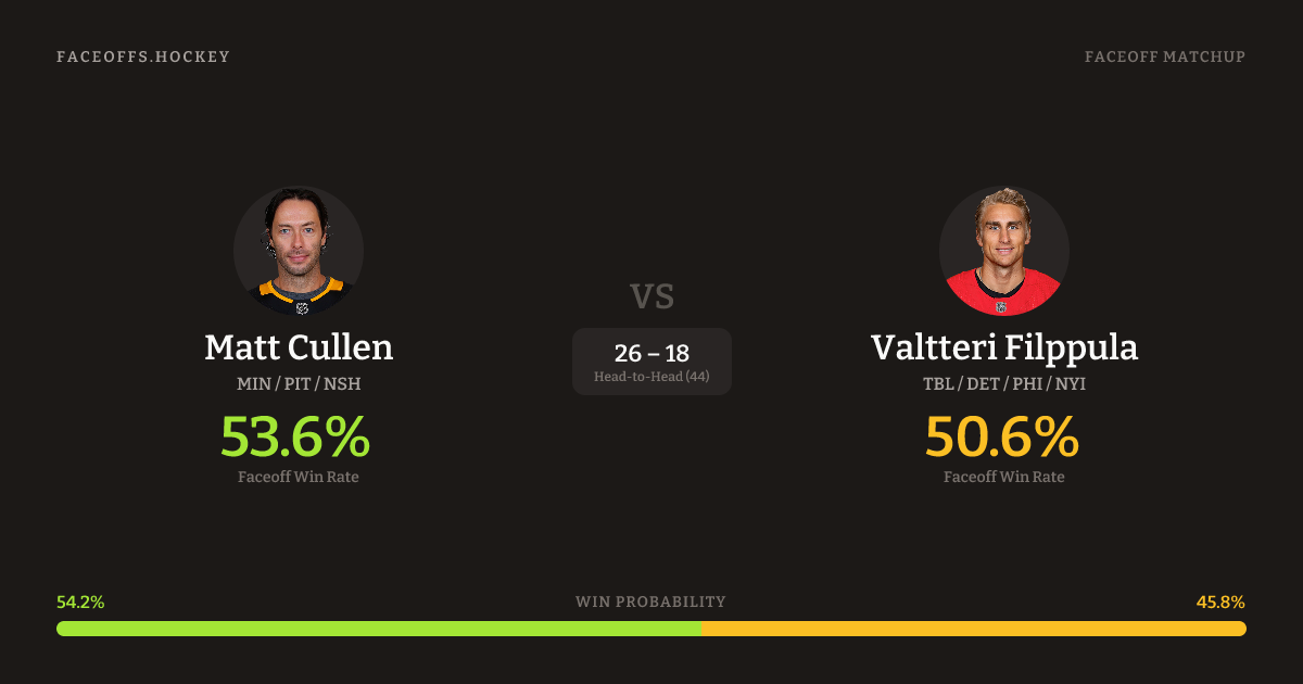 Matt Cullen vs Valtteri Filppula — Faceoff Head-to-Head