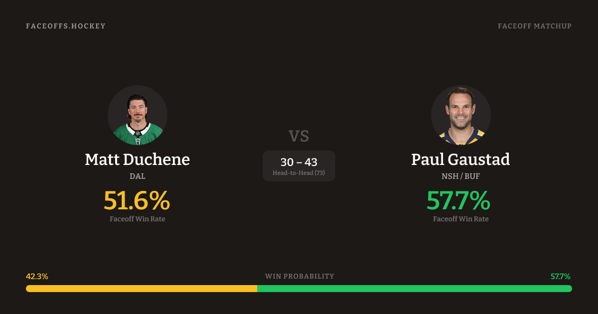 Matt Duchene vs Paul Gaustad — Faceoff Head-to-Head
