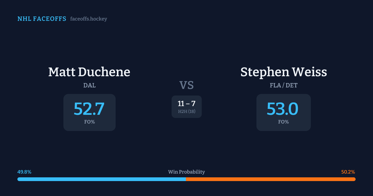 Matt Duchene vs Stephen Weiss — Faceoff Head-to-Head