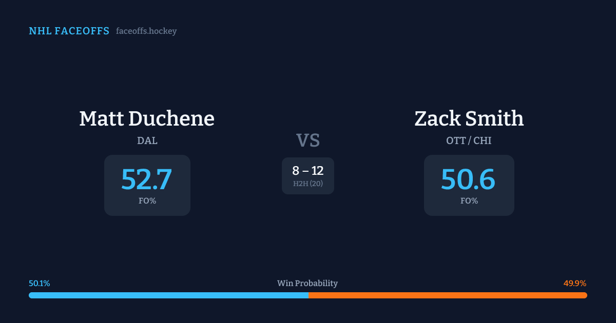 Matt Duchene vs Zack Smith — Faceoff Head-to-Head