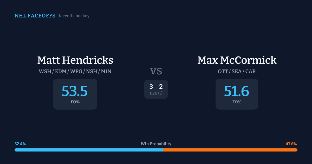 Matt Hendricks vs Max McCormick — Faceoff Head-to-Head
