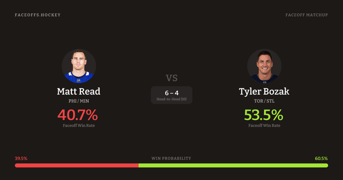 Matt Read vs Tyler Bozak — Faceoff Head-to-Head