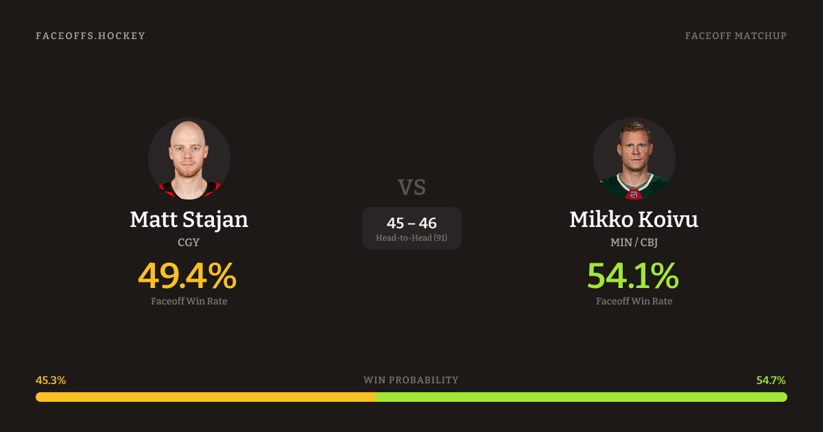 Matt Stajan vs Mikko Koivu — Faceoff Head-to-Head