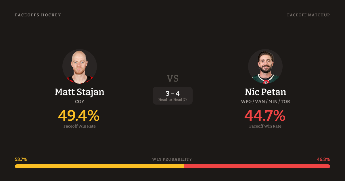 Matt Stajan vs Nic Petan — Faceoff Head-to-Head