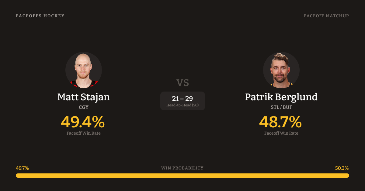 Matt Stajan vs Patrik Berglund — Faceoff Head-to-Head