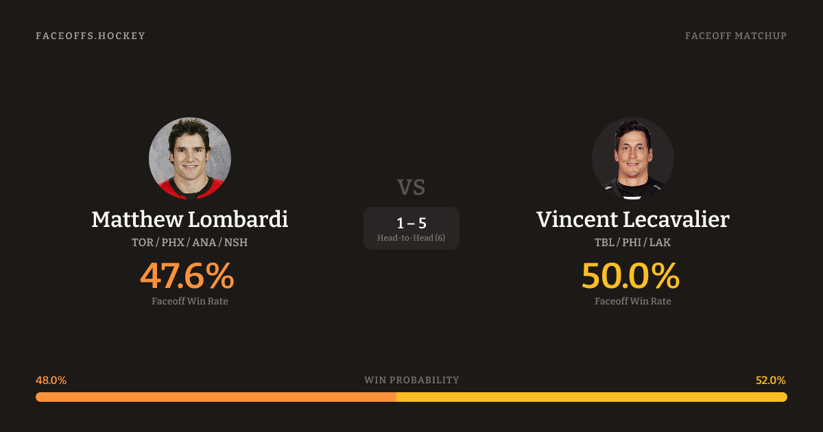 Matthew Lombardi vs Vincent Lecavalier — Faceoff Head-to-Head