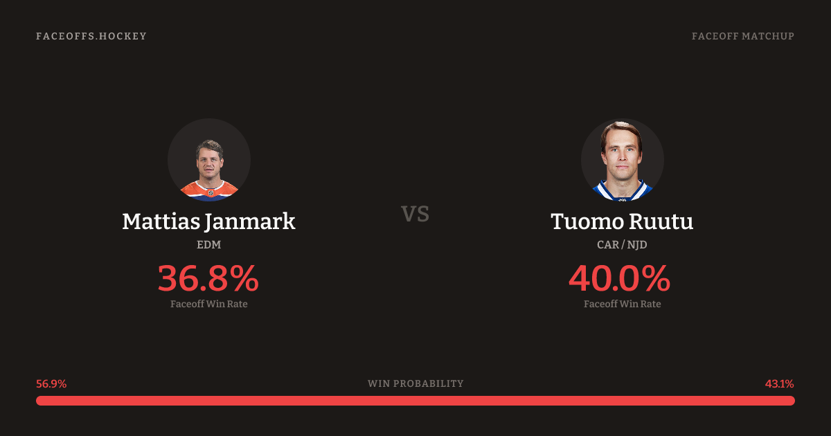 Mattias Janmark vs Tuomo Ruutu — Faceoff Head-to-Head