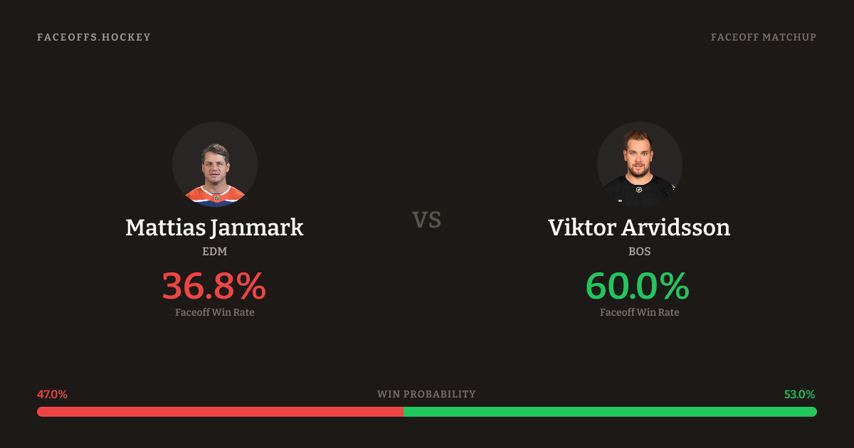 Viktor Arvidsson holds a +23.2% FO% edge overall.