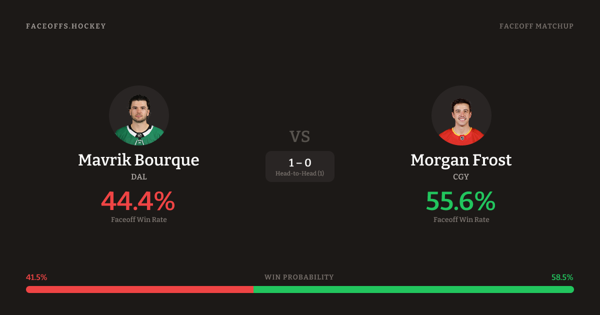 Mavrik Bourque vs Morgan Frost — Faceoff Head-to-Head