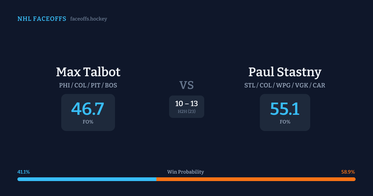 Max Talbot vs Paul Stastny — Faceoff Head-to-Head
