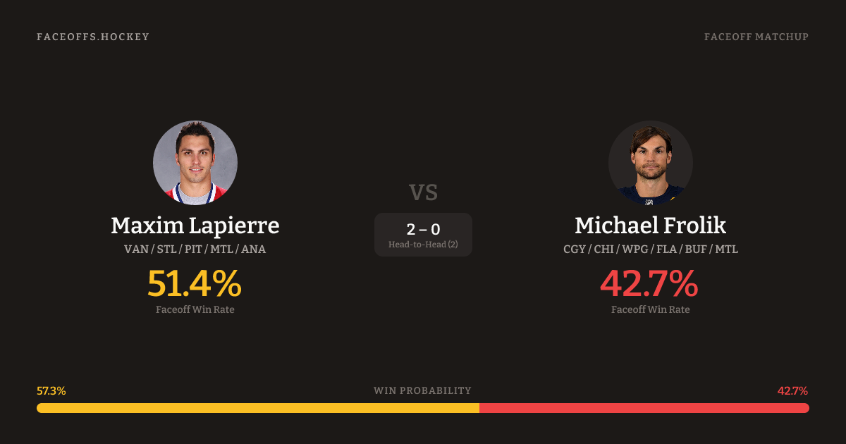 Maxim Lapierre vs Michael Frolik — Faceoff Head-to-Head