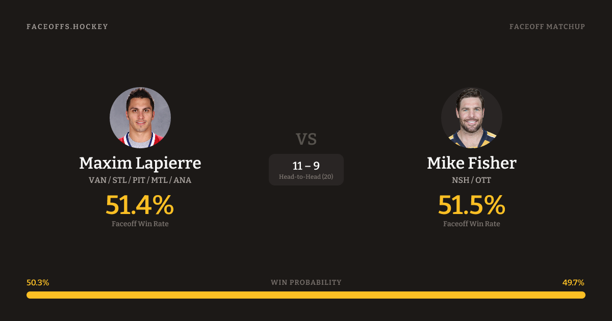Maxim Lapierre vs Mike Fisher — Faceoff Head-to-Head