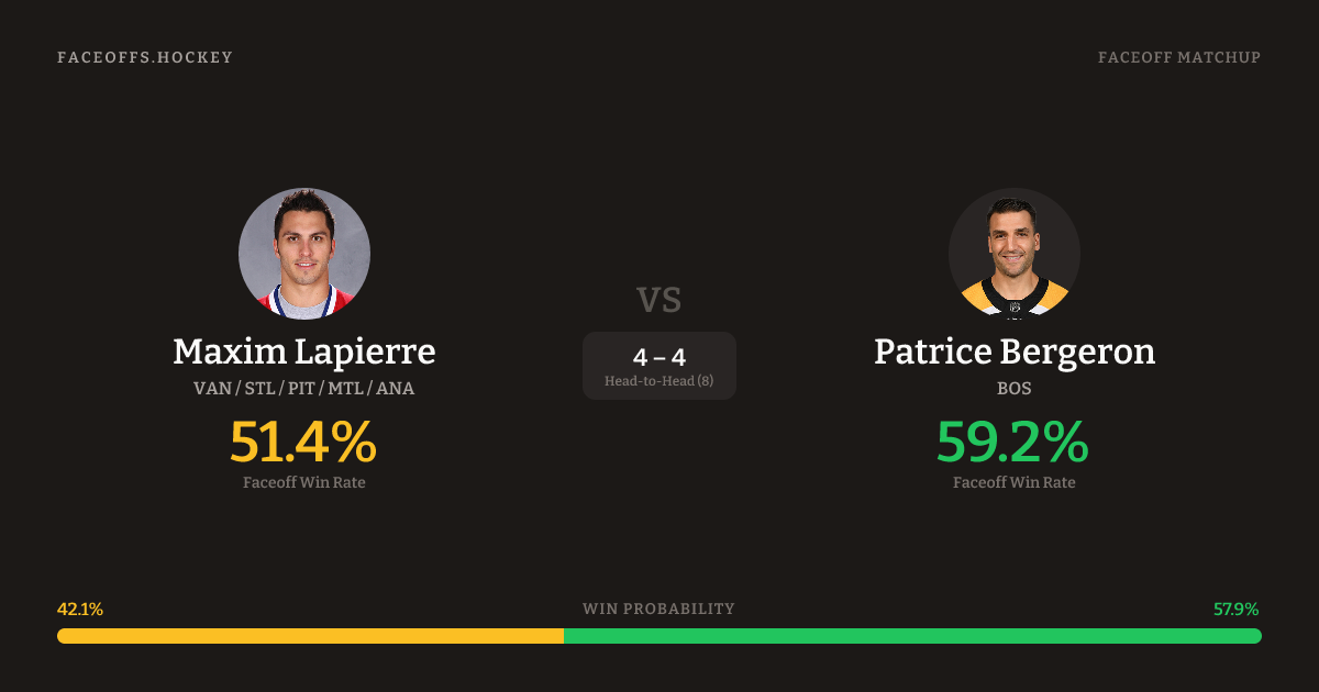 Maxim Lapierre vs Patrice Bergeron — Faceoff Head-to-Head
