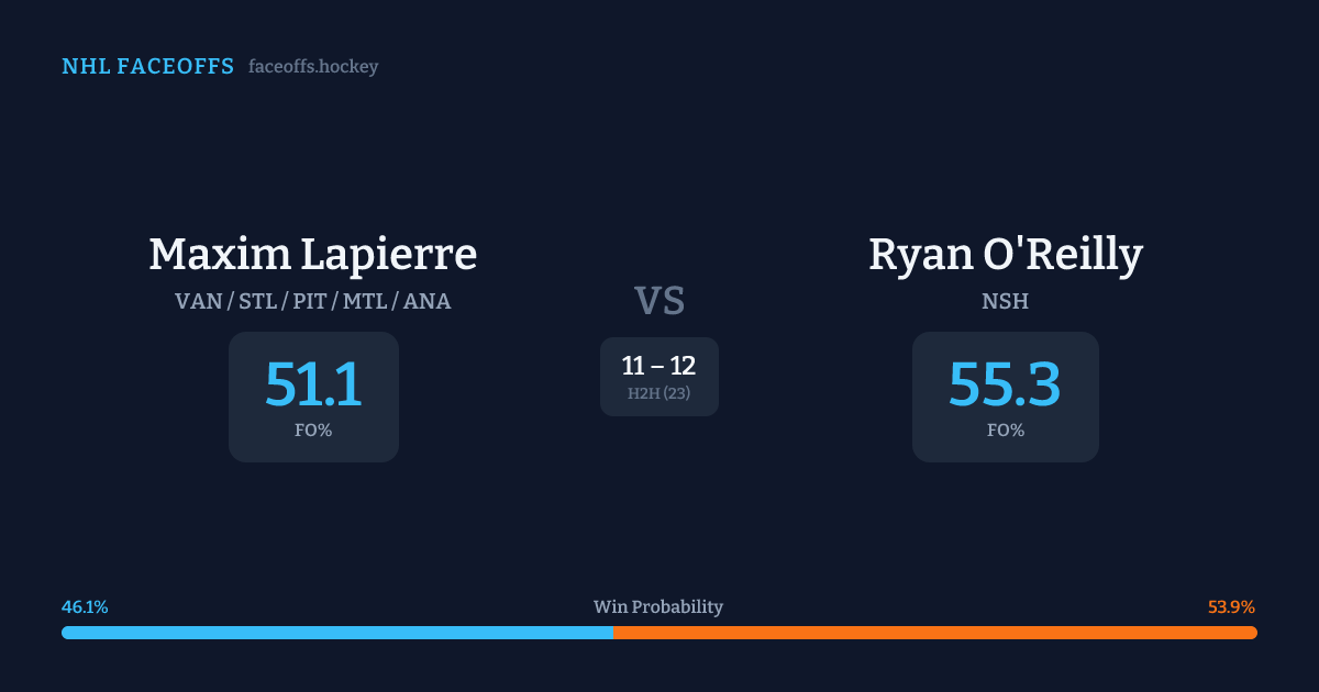 Maxim Lapierre vs Ryan O'Reilly — Faceoff Head-to-Head