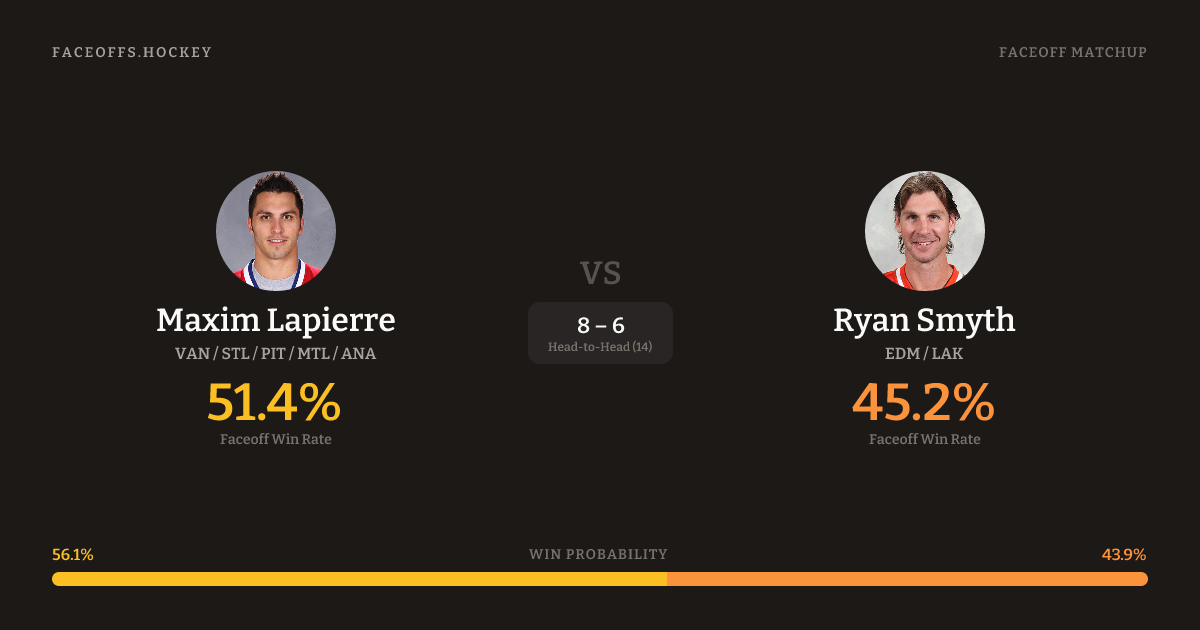 Maxim Lapierre vs Ryan Smyth — Faceoff Head-to-Head