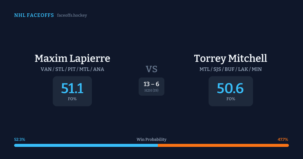 Maxim Lapierre vs Torrey Mitchell — Faceoff Head-to-Head