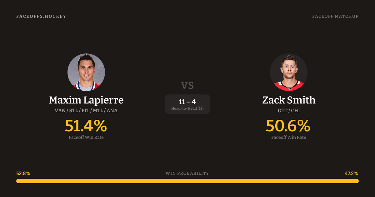 Maxim Lapierre vs Zack Smith — Faceoff Head-to-Head