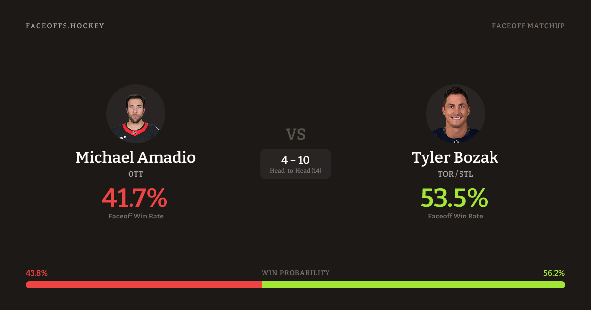 Michael Amadio vs Tyler Bozak — Faceoff Head-to-Head