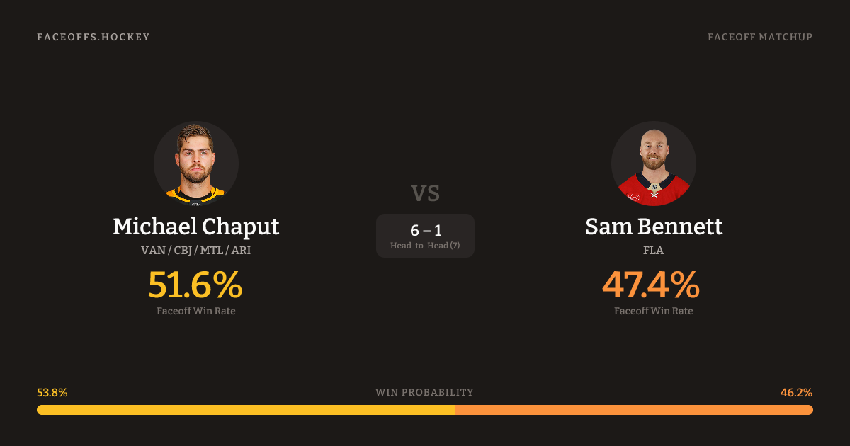Michael Chaput vs Sam Bennett — Faceoff Head-to-Head