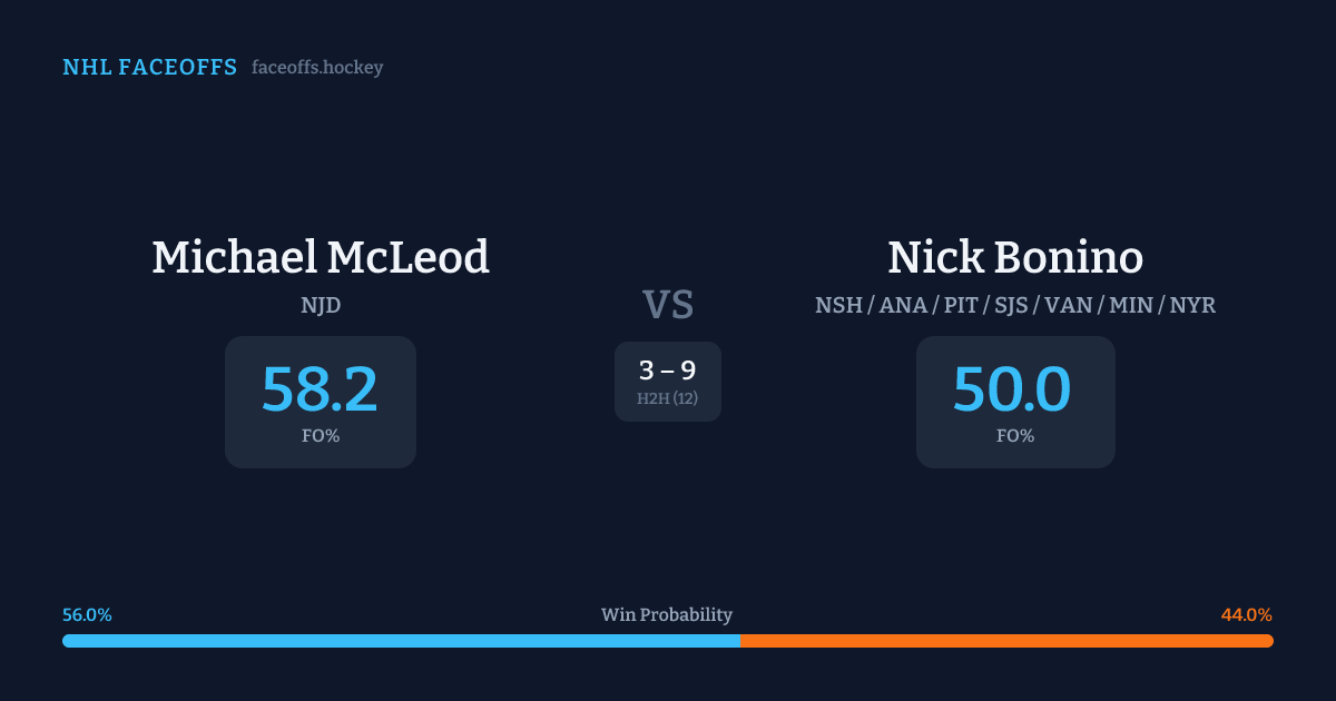 Michael McLeod vs Nick Bonino — Faceoff Head-to-Head