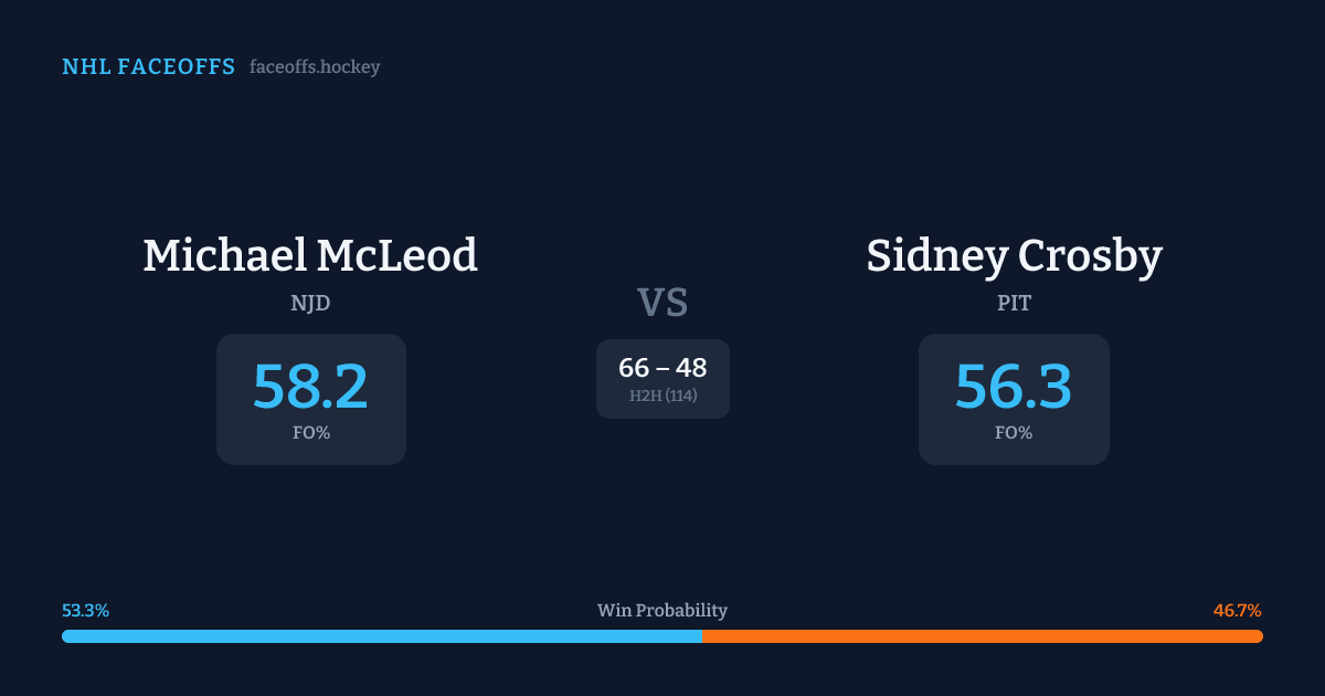 Michael McLeod vs Sidney Crosby — Faceoff Head-to-Head
