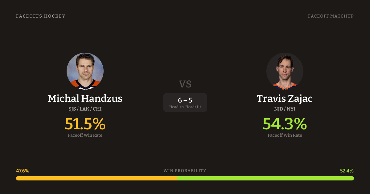 Michal Handzus vs Travis Zajac — Faceoff Head-to-Head