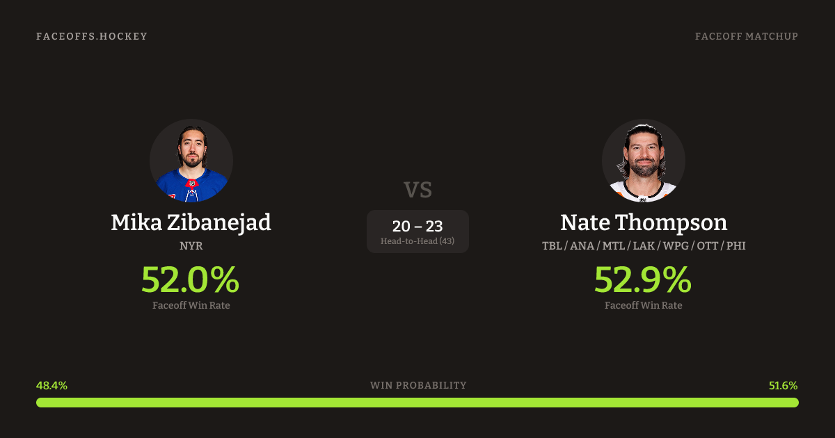 Mika Zibanejad vs Nate Thompson — Faceoff Head-to-Head