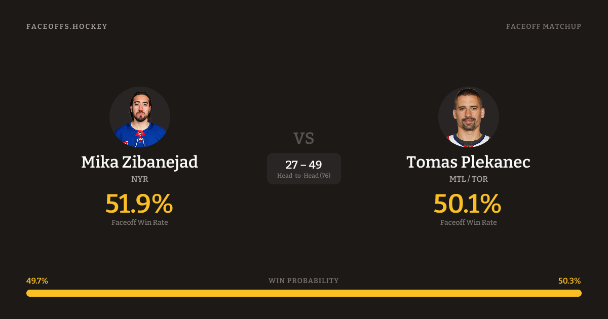 Mika Zibanejad vs Tomas Plekanec — Faceoff Head-to-Head