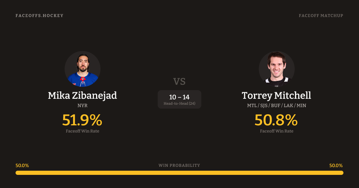 Mika Zibanejad vs Torrey Mitchell — Faceoff Head-to-Head