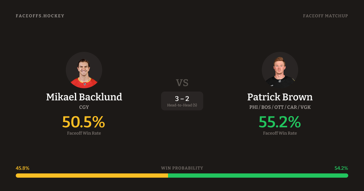 Mikael Backlund vs Patrick Brown — Faceoff Head-to-Head