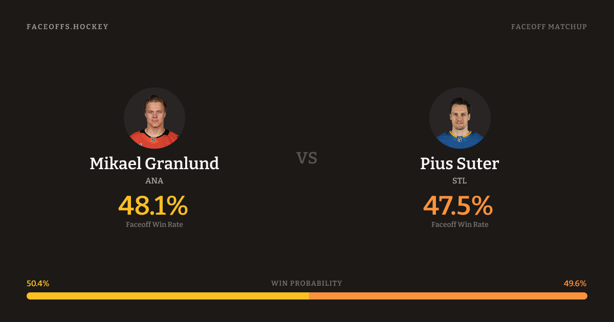 Mikael Granlund vs Pius Suter — Faceoff Head-to-Head