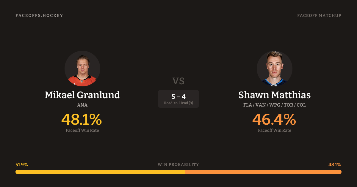 Mikael Granlund vs Shawn Matthias — Faceoff Head-to-Head