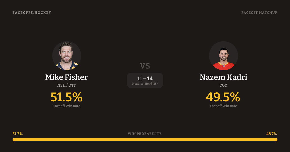 Mike Fisher vs Nazem Kadri — Faceoff Head-to-Head