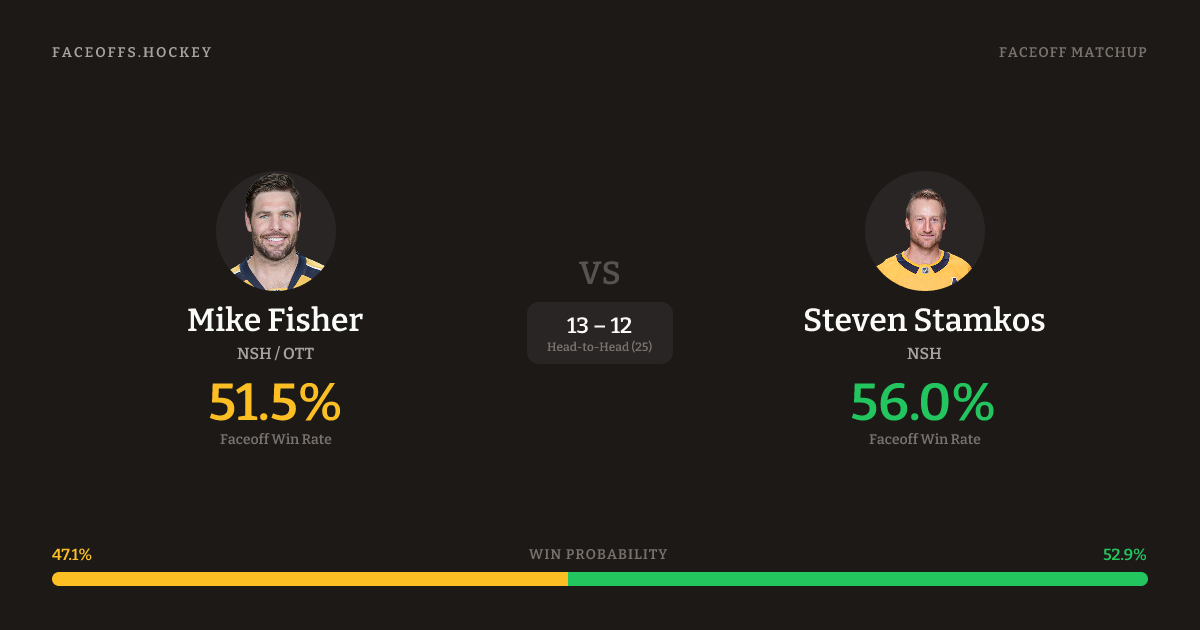 Mike Fisher vs Steven Stamkos — Faceoff Head-to-Head