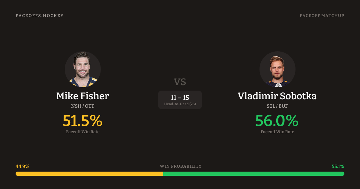 Mike Fisher vs Vladimir Sobotka — Faceoff Head-to-Head