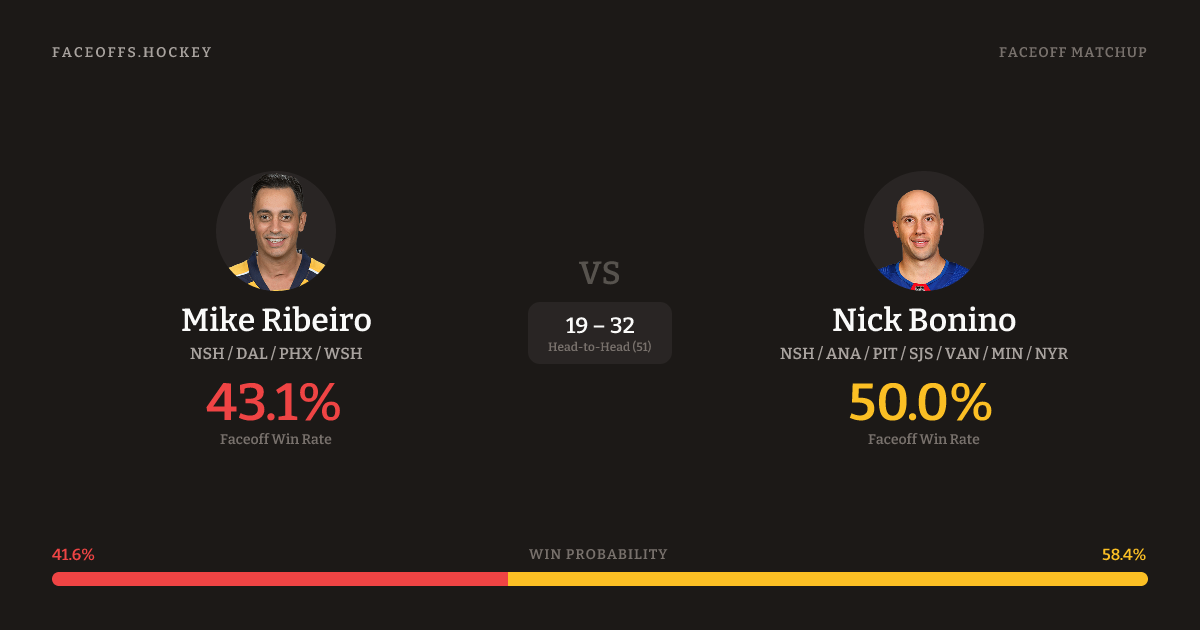 Mike Ribeiro vs Nick Bonino — Faceoff Head-to-Head