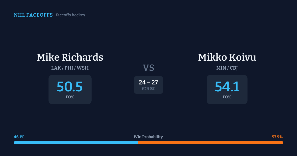 Mike Richards vs Mikko Koivu — Faceoff Head-to-Head