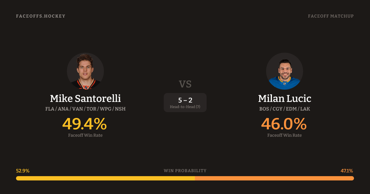 Mike Santorelli vs Milan Lucic — Faceoff Head-to-Head
