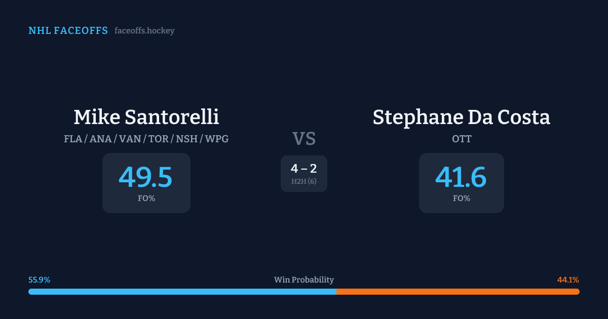 Mike Santorelli vs Stephane Da Costa — Faceoff Head-to-Head