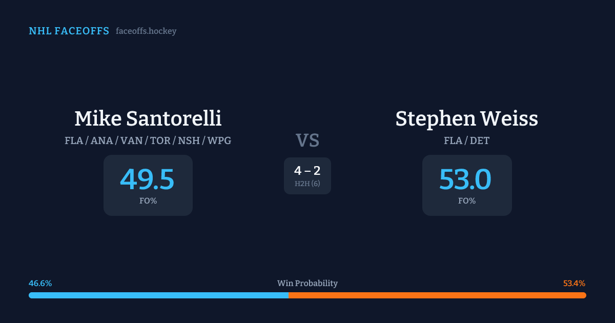 Mike Santorelli vs Stephen Weiss — Faceoff Head-to-Head