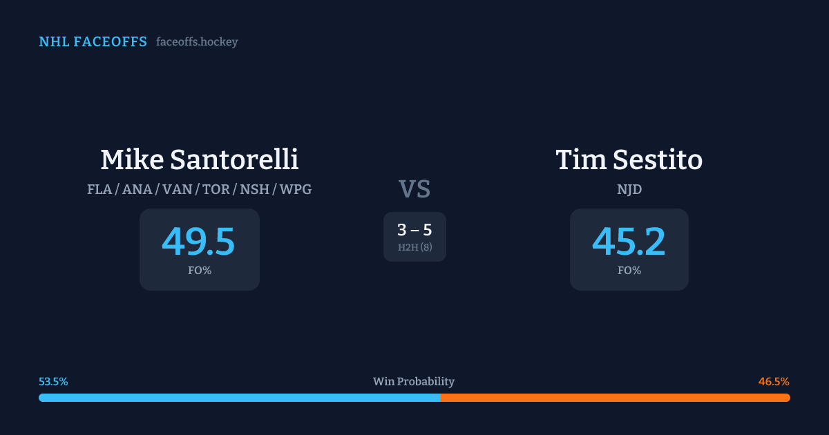 Mike Santorelli vs Tim Sestito — Faceoff Head-to-Head